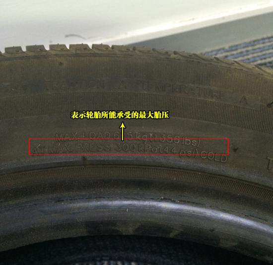 轮胎上也会有胎压相关的标识,表示轮胎所能承受的最大胎压。